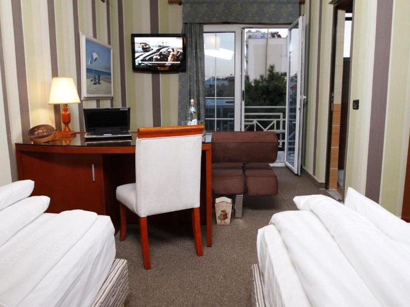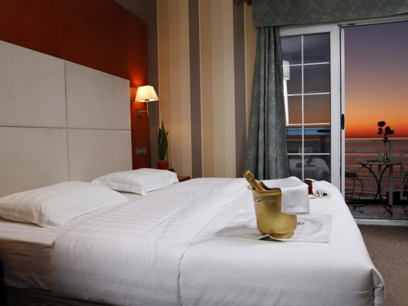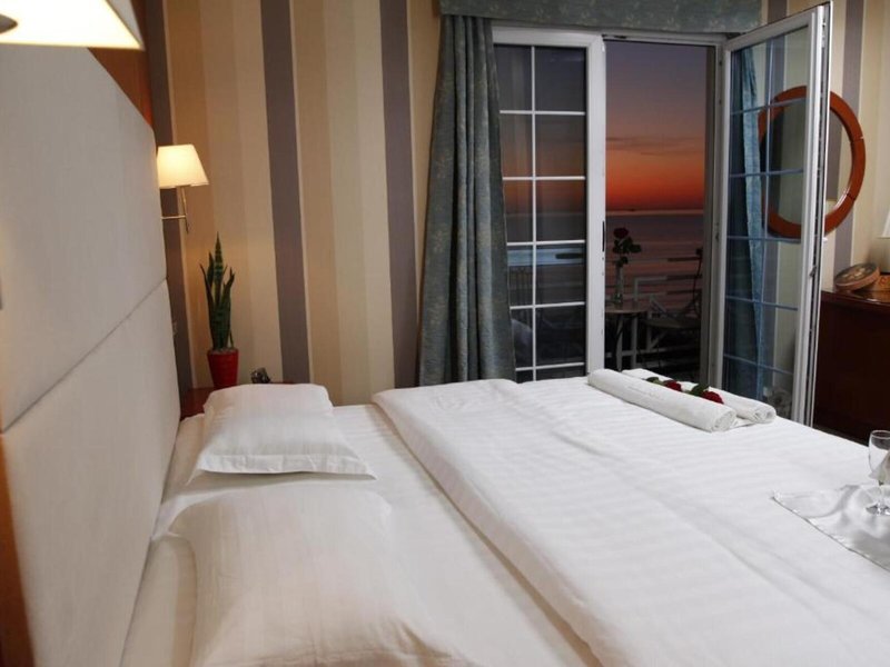 Vaše ubytovanie: Klimatizácia a kúrenie zabezpečujú príjemnú vnútornú klímu v izbách. Hostia si môžu oddýchnuť a vychutnať si výhľad na more na balkóne alebo súkromnej terase väčšiny izieb. Izby majú manželskú posteľ, manželskú posteľ, posteľ veľkosti queen-size alebo rozkladaciu pohovku. K dispozícii sú samostatné spálne. K dispozícii je aj detská postieľka a prístelka. K dispozícii je aj trezor, minibar a písací stôl. Súčasťou štandardného vybavenia je aj chladnička. Pre väčšie pohodlie hostí je k dispozícii žehliaca súprava. Okrem toho je k dispozícii telefón s priamou voľbou, TV a Wi-Fi pripojenie na internet (bezplatné). K vybaveniu izby patria papuče. Kúpeľňa je vybavená sprchovacím kútom a vaňou, sušičom vlasov a telefónom. Hotel ponúka rodinné, nefajčiarske a fajčiarske izby.