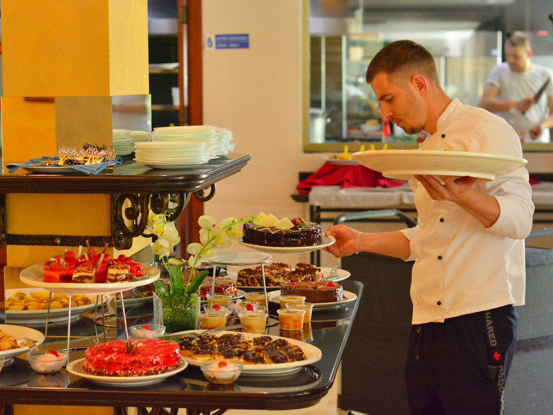 - Hauptrestaurant „Main Restaurant“: Küche: französisch, griechisch, international, italienisch, landestypisch, mediterran, regional, türkisch, Grillgerichte, glutenfreie Gerichte, Kinderbuffet, Kindermenü, Buffet, à la carte, Raucherbereich, angemessene Kleidung erwünscht