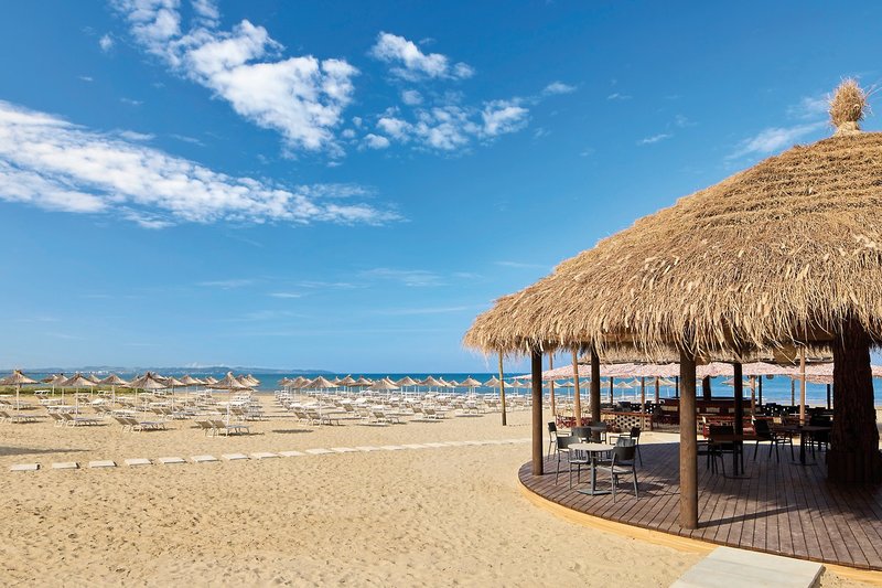 Uvoľnený stredomorský životný štýl, moderná elegancia a pohodlie, ktoré očakávate od Sol by Meliá: Tento plážový rezort ponúka celej rodine nezabudnuteľný dovolenkový zážitok na jadranskom pobreží Albánska.Vaše výhody: Priama poloha pri pláži so súkromnou piesočnatou plážou