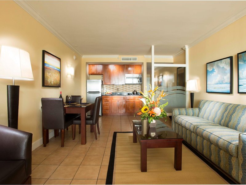 So wohnen Sie: Für angenehmes Raumklima in den Zimmern sorgen eine Klimaanlage, eine Heizung und ein Ventilator. In den meisten Zimmern zählt ein Balkon zum Standard. Die Zimmer verfügen über ein Doppelbett, ein Queensize-Bett, ein Kingsize-Bett oder ein Sofabett. Es gibt separate Schlafzimmer. Zustellbetten können angefordert werden. Außerdem sind ein Safe, eine Minibar und ein Schreibtisch verfügbar. Die Kochnische ist mit einem Kühlschrank, einer Mikrowelle, einer Tee-/Kaffeemaschine und einem Geschirrspüler gut für Selbstversorger ausgestattet. Ferner gibt es eine Waschmaschine und ein Bügelset. Besten Urlaubskomfort bieten ein Telefon mit Direktwahl, ein TV-Gerät mit Satelliten-/Kabelempfang, ein Radio, ein DVD-Player, ein Wecker und WiFi (ohne Gebühr). Eine Dusche, eine Badewanne und eine Whirlwanne gehören zum Interieur der Badezimmer. Für den täglichen Gebrauch stehen ein Haartrockner, Bademäntel und ein Telefon zur Verfügung. Als Besonderheit genießen die Gäste in den Badezimmern Kosmetikartikel. Außerdem sind rollstuhlgerechte Zimmer mit barrierefreiem Badezimmer buchbar. Der Komplex bietet Familien- und Nichtraucherzimmer.