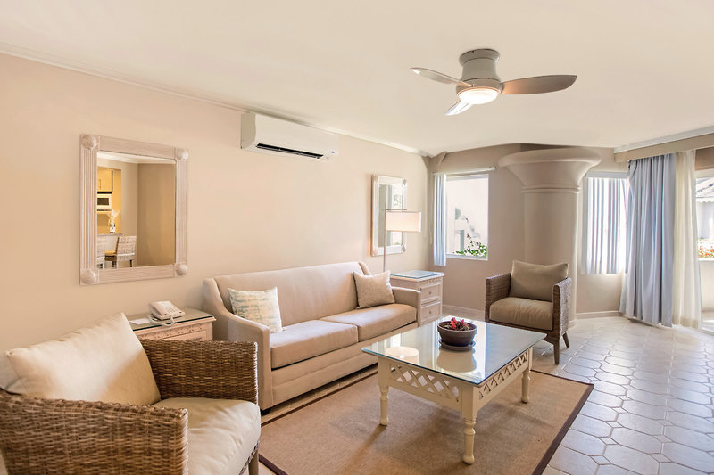 - 61-70 qm, Suite, Meerblick, Gartenblick, Poolblick (seitlich), 2 separate Schlafzimmer, Sitzecke, Sofabett, Dusche, Bademantel, Haartrockner, Klimaanlage, Ventilator, Safe, Bügelbrett, Bügeleisen, TV, Küche, Kochnische, Balkon oder Terrasse
