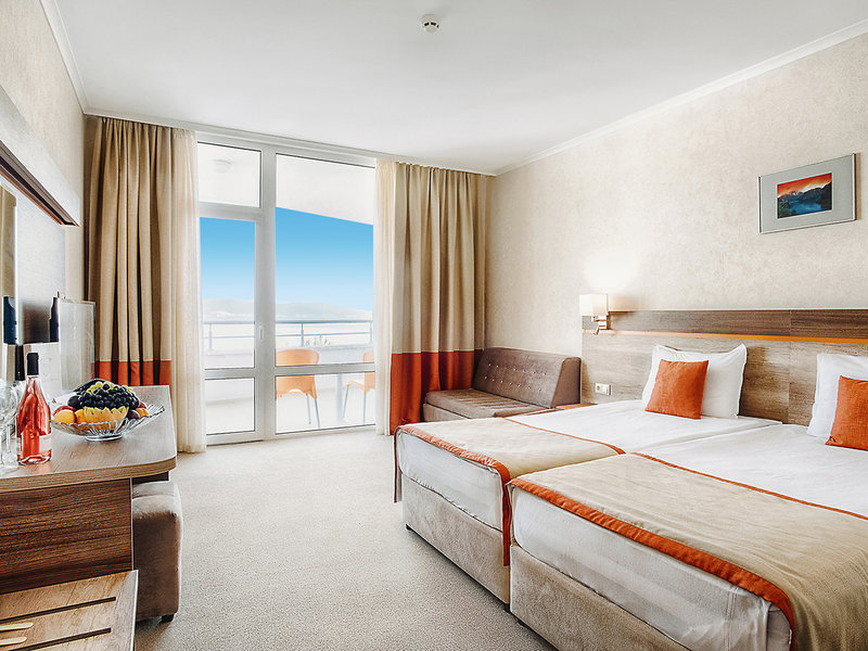 Lage: An der südlichen Spitze vom Sonnenstrand. Der weitläufige, feinsandige Strand ist nur 150 m entfernt. Busverbindung zum Sonnenstrand. Zur romantischen Altstadt von Nessebar sind es nur wenige Gehminuten.