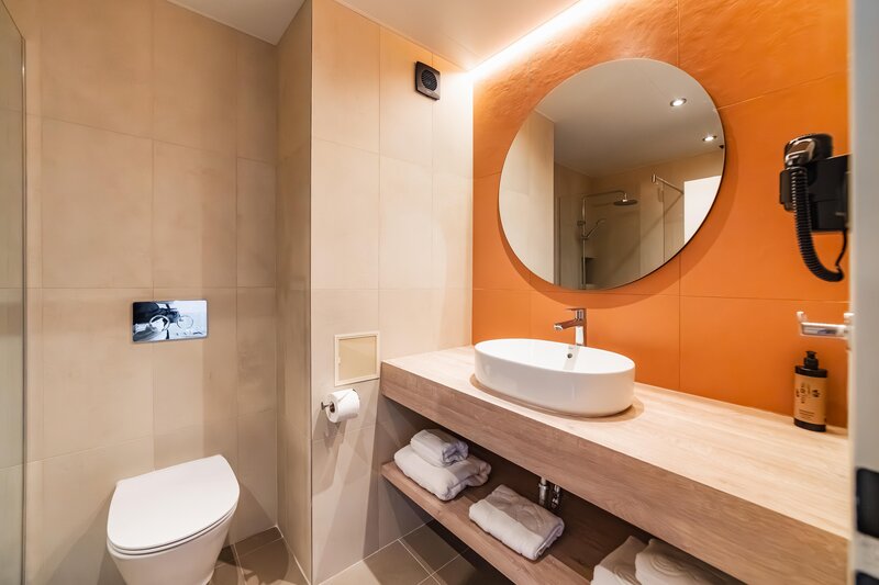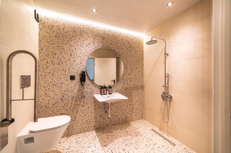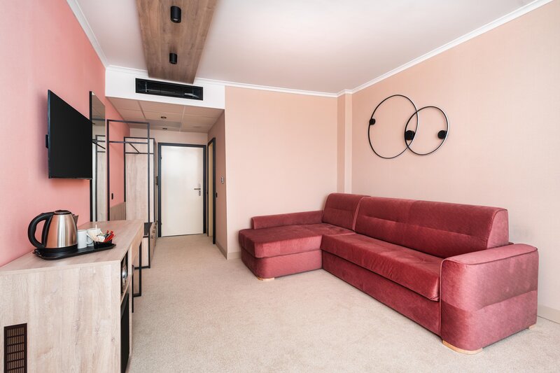 Suite (SUM, ca. 45 qm), Klimaanlage, Minibar (gegen Gebühr), Telefon, TV, WLAN. Dusche, WC und Föhn. Balkon. Max. 3E+1K