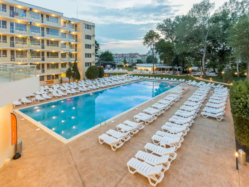 Poloha a okolie Hotel je centrálne umiestnený v prímorskom letovisku Slnečné pobrežie. Nachádza sa asi 250 m od mierne sa zvažujúcej piesočnatej pláže a rušnej promenády. Bary, reštaurácie, obchody a diskotéky sú neďaleko od hotela. Letisko Varna je vzdialené približne 98 km. Čas prenosu cca 95 minút.