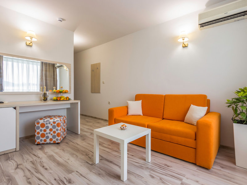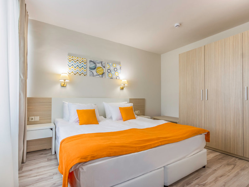 - Apartment (APX1), Appartement, Nichtraucherzimmer, im Hauptgebäude, letzte Komplettrenovierung 2017, letzte Teilrenovierung 2023, bestehend aus 2 Zimmern, optisch getrennt durch Schiebetür, 1 Schlafzimmer, 1 Doppelbett, 1 Schlafsofa (150x180cm), Babybett, Klimaanlage: individuell regelbar, Fußboden: Laminat, Safe, Sofa, Kühlschrank, Telefon, Internet: WLAN/WiFi: ohne Gebühr, Fernseher: deutsches Programm, Sat-TV, Dusche, WC, Föhn, Balkon