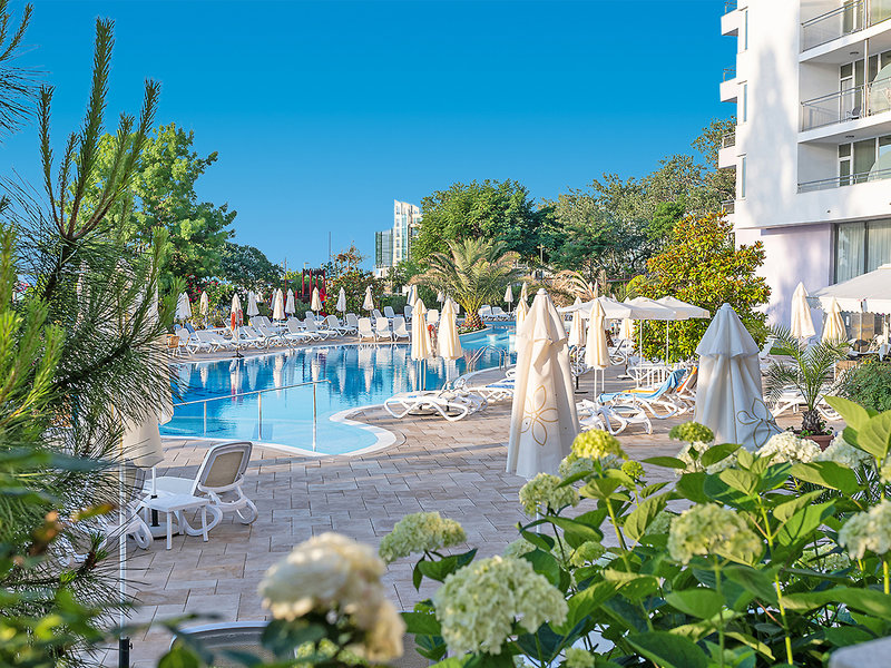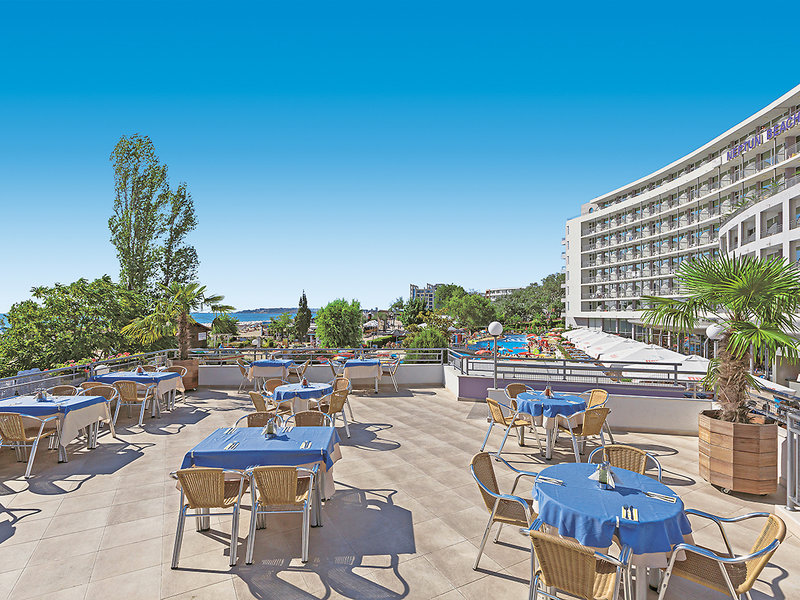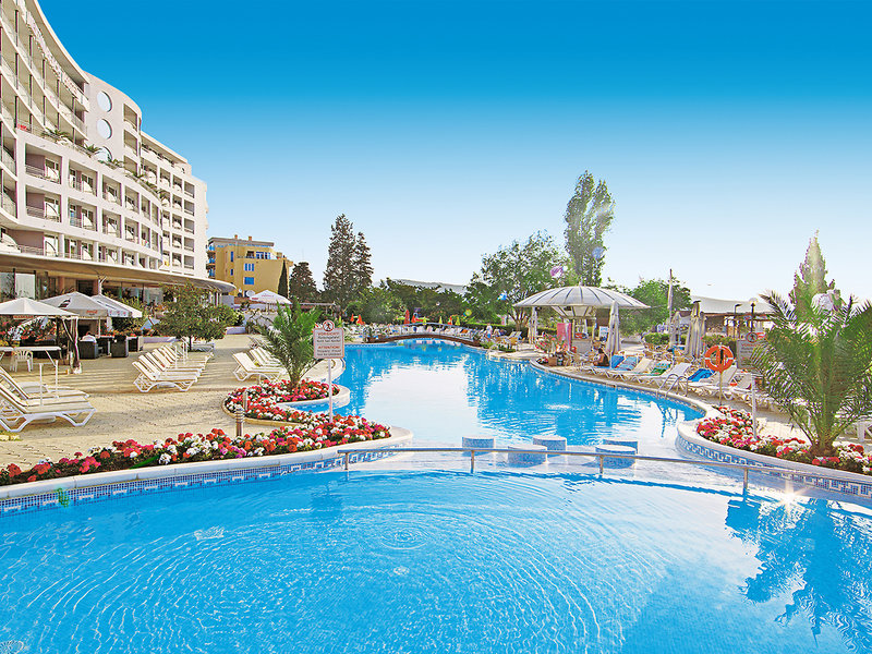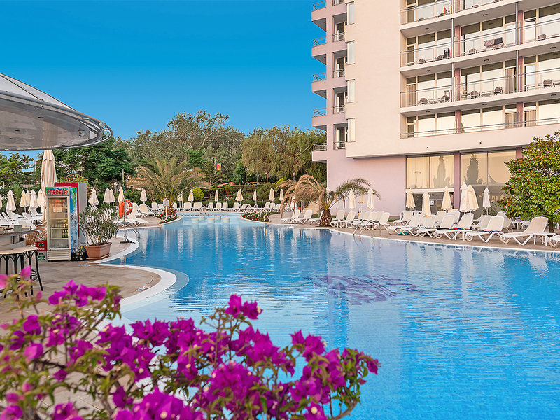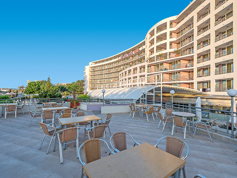 Lage: Der Sandstrand ist nur durch eine Uferpromenade vom Hotel getrennt. Das Zentrum von Sonnenstrand mit zahlreichen Unterhaltungsmöglichkeiten ist ca. 100 m entfernt.