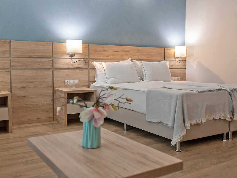 Štúdio (SAM, cca 35 m2), klimatizácia, minibar, TV, telefón, trezor, WiFi. Sprcha, WC, fén. Balkón s výhľadom na more. Max. 2E+2K/3E+1K