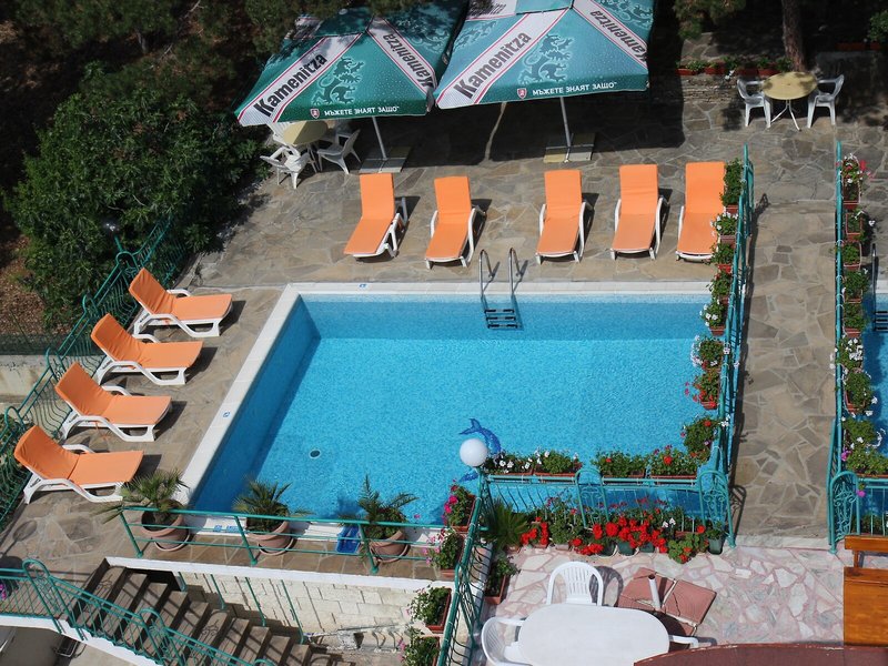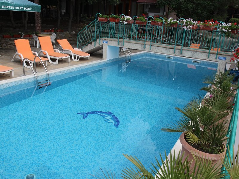 Poloha a okolie Tento hotel na kopci v severnej časti Zora na Slnečnom pobreží je obklopený krásnou záhradou a len asi 350 m od pláže. Oblasť je známa miernym podnebím. Do centra mesta s rozmanitými možnosťami trávenia voľného času a dopravy sa autom dostanete len za 5 minút. Letisko Burgas je vzdialené približne 35 km.