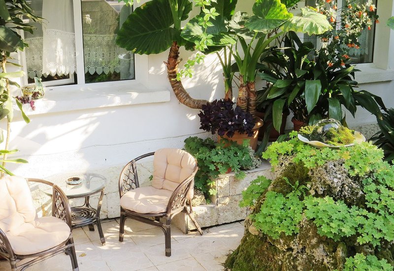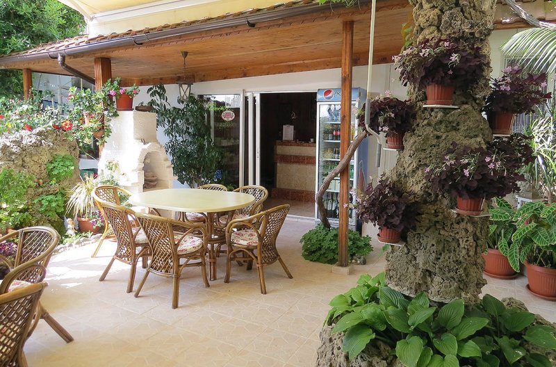 Recepcia sa nachádza v príjemnej vstupnej hale. Vonku sa nachádza krásny bazén so slnečnou terasou, posedením, ležadlami a slnečníkmi (v cene a v závislosti od dostupnosti). V záhrade sa nachádza aj malá kaviareň (otvorená sezónne približne od polovice júna do polovice septembra).