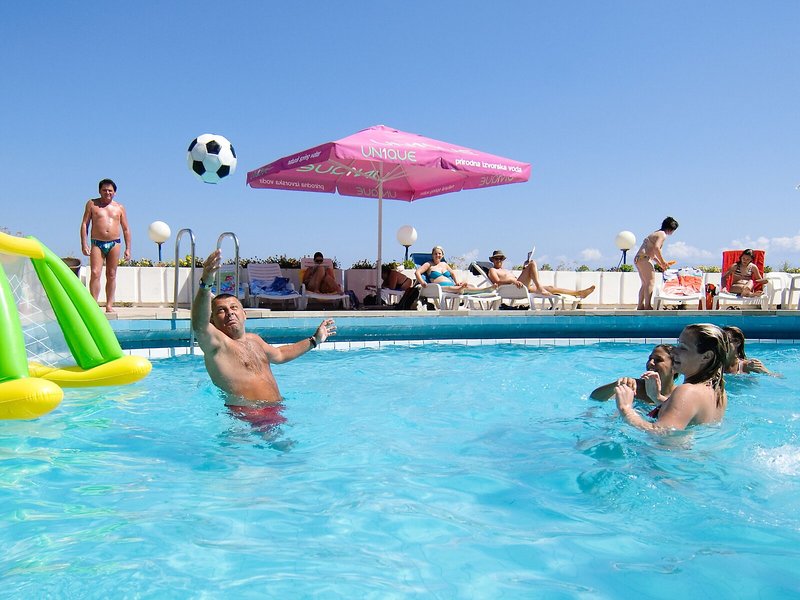 - Bazény: Detský bazén, vonkajší bazén, slnečníky pri bazéne, ležadlá pri bazéne