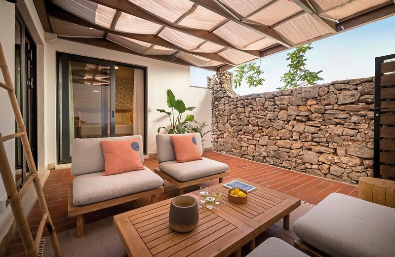 - 21-25 qm, Villa, Parkblick, Bettwäsche, Handtücher und Matratzen aus 100% Bio-Baumwolle, Dusche, Haartrockner, Klimaanlage, Mini-Kühlschrank, TV, WLAN, Mikrowelle, Kaffeemaschine, Terrasse (möbliert), Whirlpool