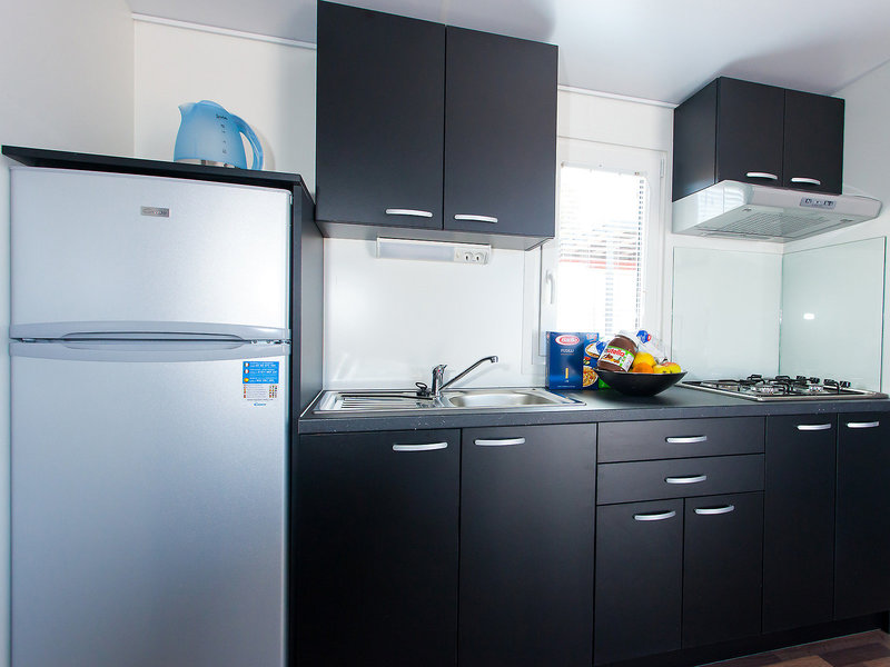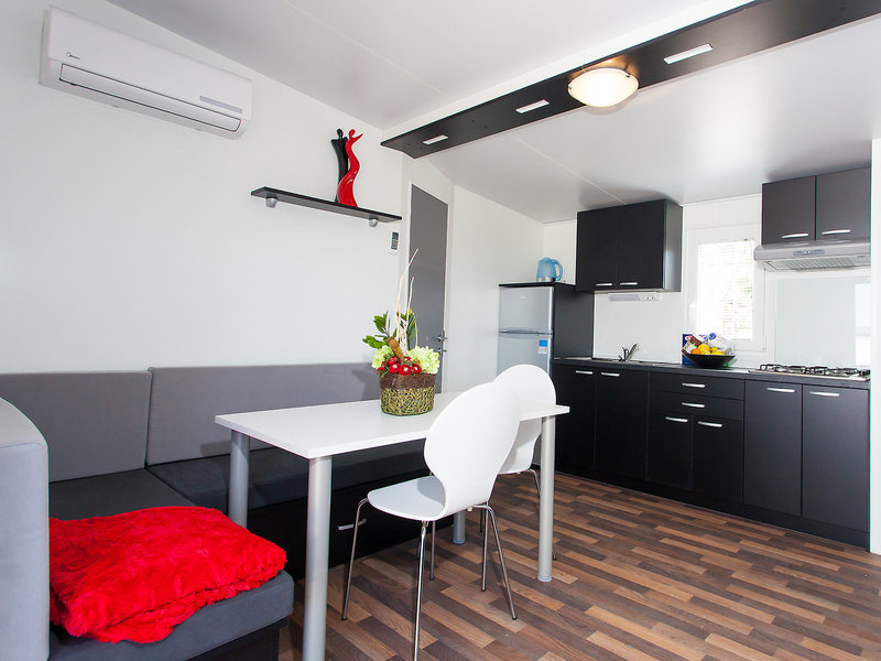 - Mobilný dom typu (MHX2), apartmán, celkový počet izieb v tomto type izby: 4, dispozičné riešenie: obývačka, 3 spálne, 2 samostatné postele (80x200cm), 2 manželské postele (160x200cm), detská postieľka: platba v hotovosti, za deň cca 6 EUR, klimatizácia : individuálne ovládateľná, studená, teplá, kúrenie: individuálne ovládateľná, podlaha: laminát, sedenie, sedačka, kuchyňa, chladnička, plynový/elektrický sporák, kávovar, rýchlovarná kanvica, Internet: WLAN/WiFi: zdarma, TV: v obývačke, SAT -TV, sprcha, WC, 2 kúpeľne, terasa: s ležadlami, s posedením, príplatky: záverečné upratovanie: platba v hotovosti, jednorazovo cca 30 EUR