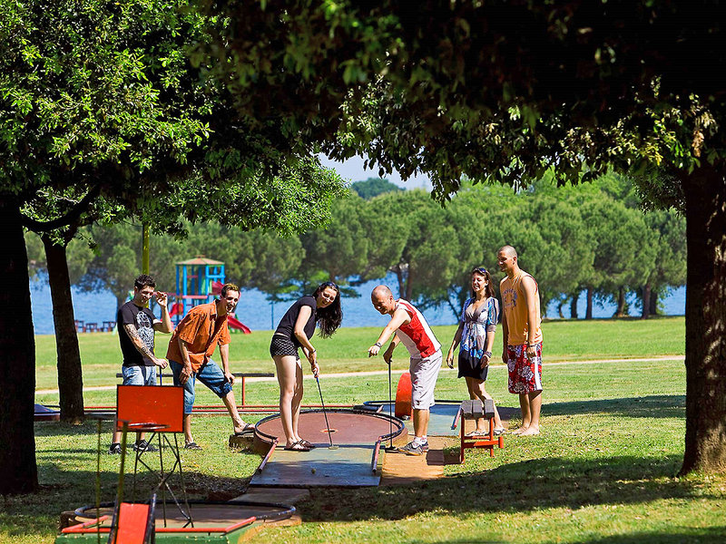 - Animácie a športové aktivity: Široká ponuka aktivít pre deti a dospelých od polovice mája do prvého septembrového týždňa, detské ihrisko, malý futbal, plážový volejbal, bežecké chodníky, športové turnaje; za príplatok: stolný tenis, tenisové kurty, požičovňa bicyklov, vodný skúter, kanoe, vodný bicykel, banán, športové vybavenie na windsurfing, parasailing.