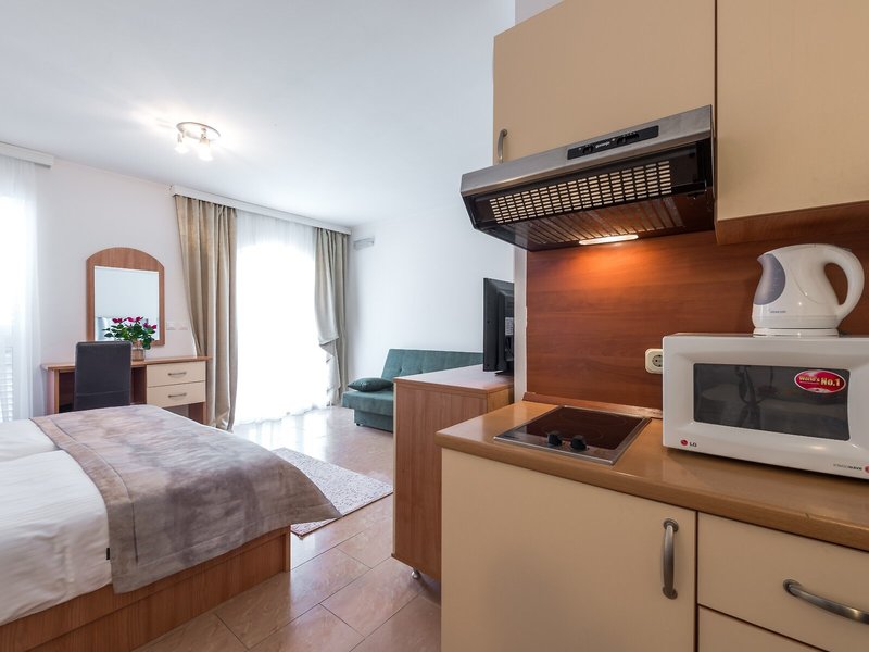Takto sa ubytujete: Klimatizácia a kúrenie zabezpečujú príjemnú vnútornú klímu v izbách. Hostia si môžu vychutnať výhľad na more z balkóna alebo terasy. Izby majú manželskú posteľ alebo rozkladaciu pohovku. K dispozícii sú samostatné spálne. K dispozícii je aj trezor, minibar a pracovný stôl. Kuchynka je vybavená chladničkou, mikrovlnnou rúrou a príslušenstvom na prípravu čaju/kávy. Pre väčšie pohodlie hostí je k dispozícii súprava na žehlenie. Okrem toho je k dispozícii telefón, TV a WiFi (zadarmo). Kúpeľňa je vybavená sprchovacím kútom a vaňou a sušičom vlasov. Kozmetické výrobky zaisťujú extra pohodlie v kúpeľniach. Ubytovanie ponúka rodinné a nefajčiarske izby.