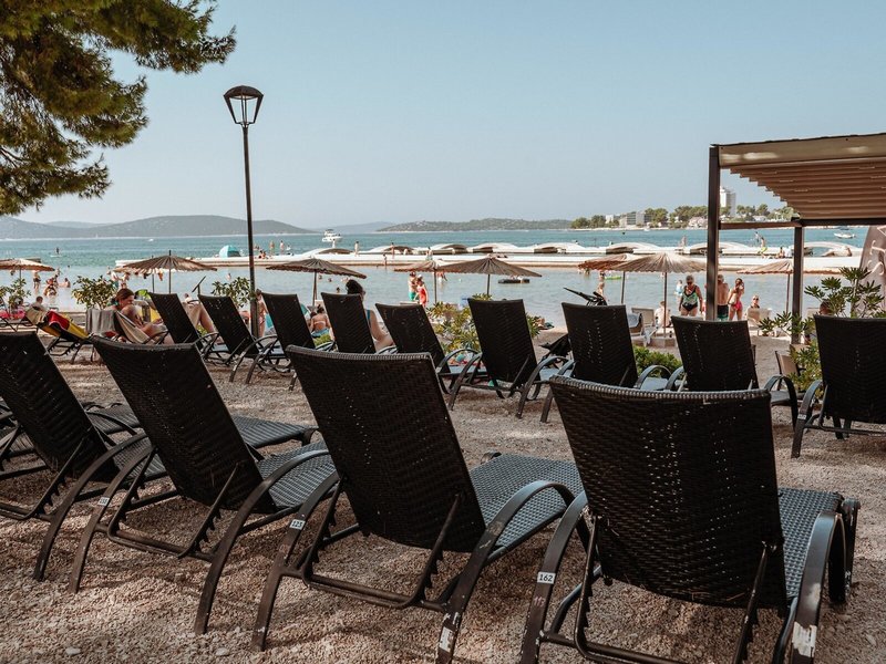 Lage & Umgebung Das Resort liegt direkt an der Strandpromenade von Vodice, nur durch eine Uferpromenade vom langen Kiesstrand getrennt. Das Zentrum von Vodice mit seinen vielfältigen Einkaufs- und Unterhaltungsmöglichkeiten ist etwa 500 Meter entfernt. Der Baloo Beach Club befindet sich in ungefähr 200 Metern Entfernung.