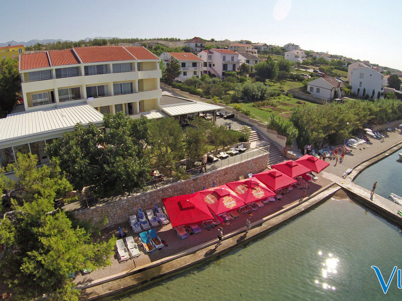 Lage & Umgebung Das Hotel befindet sich in einem kleinen Küstendorf in der Nähe der Brücke zur Insel Pag direkt am schönen Kieslstrand. Das Gemeindezentrum von Razanac ist ca. 8 km vom "Vila 4m" entfernt. Den Flughafen Zadar ist nach ca. 38 km zu erreichen.