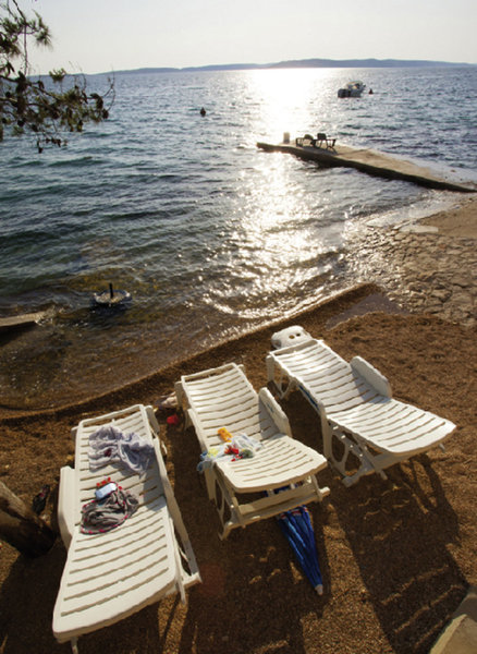 • Strand: Kies, Treppen zum Strand, Liegestühle: gegen Gebühr, Sonnenschirme