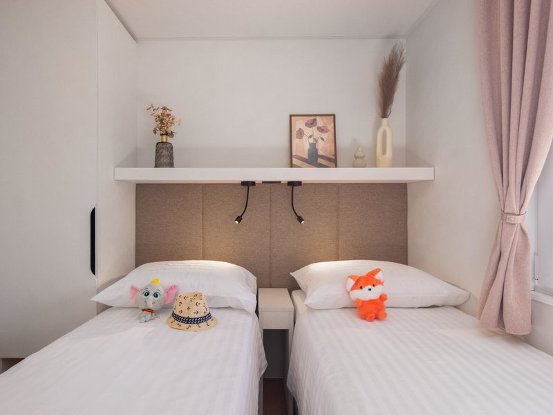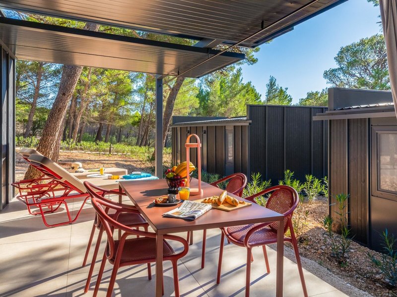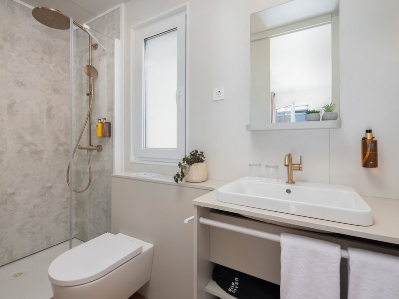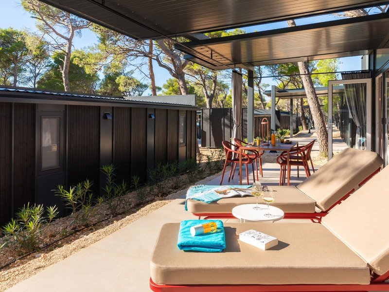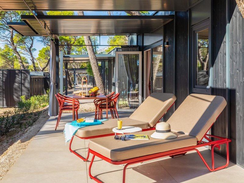 - Prémiový rekreačný dom (MHX3), mobilný dom, cca 32 m², posledná kompletná rekonštrukcia 2025, celkový počet izieb v tomto type izby: 3, rozloženie: obývacia izba, 2 spálne, 2 samostatné postele (80x200cm), 1 manželská posteľ (160x200cm), detská postieľka: zadarmo, na požiadanie a rezerváciu je potrebná, moskytiéra, klimatizácia: zadarmo, apríl - október, individuálne ovládané, kúrenie: sezónne, individuálne ovládané, trezor: zadarmo, pohovka, kuchynský kút, chladnička: zadarmo, plynový/elektrický sporák, umývačka riadu, kávovar/čajník, rýchlovarná kanvica, jedálenský stôl, internet: Wi-Fi: zadarmo, TV: plochá obrazovka, v obývacej časti, upratovacia služba: denne, zadarmo, sprcha, WC, 2 kúpeľne, fén, terasa: s ležadlami, s posedením