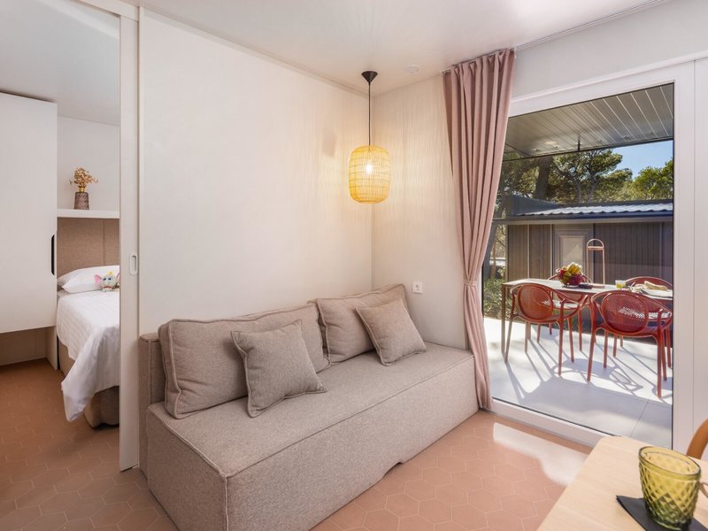 - Comfort Holiday Home (MHX2), Mobile Home, ca. 32 m², letzte Komplettrenovierung 2025, Gesamtanzahl der Räume in diesem Zimmertyp: 3, Aufteilung wie folgt: Wohnzimmer, 2 Schlafzimmer, 2 Einzelbetten (80x200cm), 1 Doppelbett (160x200cm), 1 Schlafsofa, Babybett: ohne Gebühr, Anfrage & Reservierung notwendig, Moskitonetz, Klimaanlage: ohne Gebühr, April - Oktober, individuell regelbar, Heizung: saisonabhängig, Safe: ohne Gebühr, Sofa, Kochnische, Kühlschrank: ohne Gebühr, Gas/E-Herd, Geschirrspüler, Kaffee-/Teezubereiter, Wasserkocher, Esstisch, Internet: WLAN/WiFi: ohne Gebühr, Fernseher: Flatscreen, im Wohnbereich, Reinigungsservice: täglich, ohne Gebühr, Dusche, WC, 2 Bäder, Föhn, Terrasse: mit Liegen, mit Sitzgelegenheit