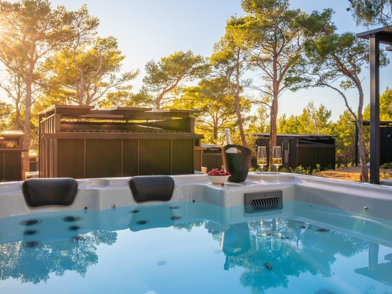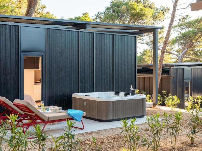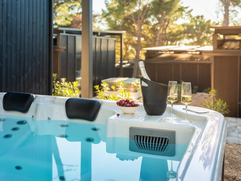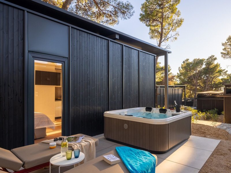 - Premium Escape with private jacuzzi (MHX4), Mobile Home, ca. 32 m², letzte Komplettrenovierung 2025, Gesamtanzahl der Räume in diesem Zimmertyp: 3, Aufteilung wie folgt: Wohnzimmer, 2 Schlafzimmer, 2 Einzelbetten (80x200cm), 1 Doppelbett (160x200cm), Babybett: ohne Gebühr, Anfrage & Reservierung notwendig, Moskitonetz, Klimaanlage: ohne Gebühr, April - Oktober, individuell regelbar, Heizung: saisonabhängig, individuell regelbar, Safe: ohne Gebühr, Sofa, Kochnische, Kühlschrank: ohne Gebühr, Gas/E-Herd, Geschirrspüler, Kaffee-/Teezubereiter, Wasserkocher, Esstisch, Internet: WLAN/WiFi: ohne Gebühr, Fernseher: Flatscreen, im Wohnbereich, Dusche, WC, Bademantel: ohne Gebühr, Slipper: ohne Gebühr, 2 Bäder, Föhn, Terrasse: mit Liegen, mit Sitzgelegenheit, mit Whirlpool