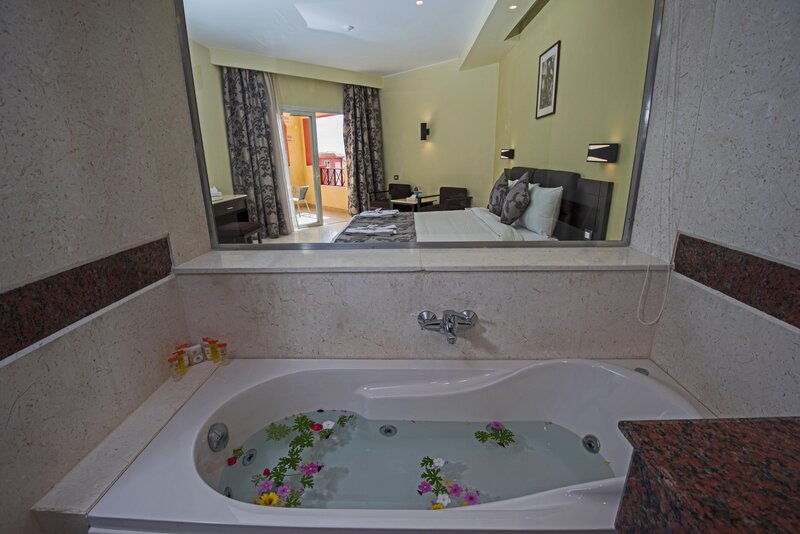Ubytovanie: Dvojlôžková izba Deluxe (s výhľadom na bazén): Individuálne nastaviteľná klimatizácia, minibar (za poplatok), rýchlovarná kanvica, TV, telefón, internet (za poplatok), trezor, kúpeľňa so sprchovacím kútom, WC, fén, balkón/terasa. Maximálna obsadenosť: 3 dospelí.