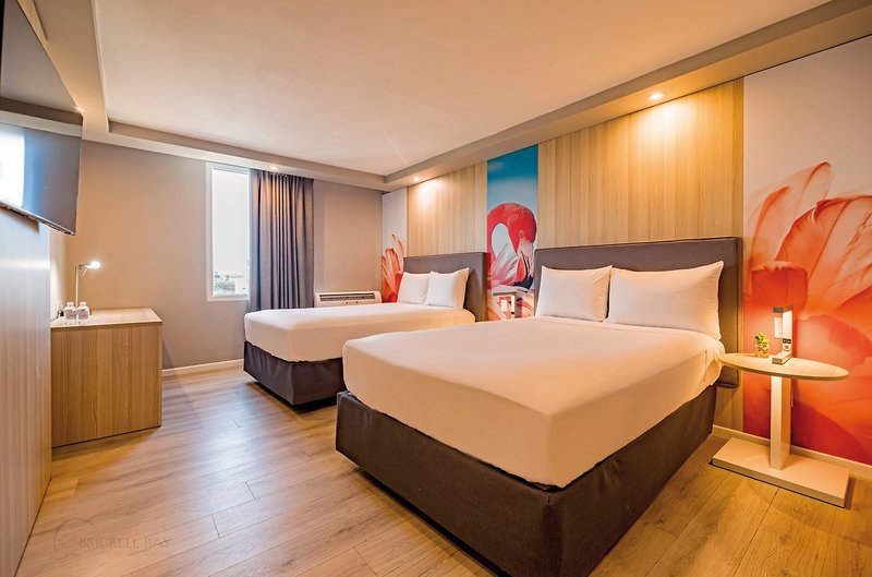 - 26-30 qm, Doppel, Premium, Schreibtisch, Doppelbetten (1 Kingsize oder 2 Queensize), Dusche, WC, Haartrockner, Laminatboden, Klimaanlage, Safe, Bügeleisen, TV (Smart-TV), Wasserkocher, Kaffee/Tee, schallisolierte Fenster, bei Ankunft im Zimmer Wasser
