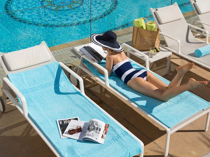 Sport & Fitness: Die Poolanlage mit Außen- und Innenbereichen lädt zum entspannten Badevergnügen ein. Auf der Sonnenterrasse mit Liegestühlen und Schirmen lässt sich der Urlaub genießen. Eine Pool-/Snackbar ist vorhanden. Abwechslung bieten viele verschiedene Sportaktivitäten, die in der Unterbringung angeboten werden, wie z.B. Radfahren/Mountainbiking, Tennis, Volleyball und Reiten und gegen Gebühr Golfen. Den Gästen des Hauses wird ein großes Wassersportprogramm geboten, darunter Windsurfen, Tretbootfahren, Bananenbootfahren, Schnorcheln und Tauchen sowie gegen Gebühr Wasserskifahren und Jetskifahren. Mit seiner Lage eignet sich das Hotel gut für Skifahrer. Die Unterbringung bietet eine Vielzahl an Möglichkeiten zur sportlichen Aktivität im Indoor-Bereich, wie etwa ein Fitnessstudio, Yoga und Gymnastik sowie gebührenpflichtig Aerobic. Im Haus werden verschiedene Wellnessangebote wie Spa, Sauna, Dampfbad, Hammam, Schönheitssalon, Massage-Anwendungen und Solarium offeriert. Zu den weiteren Freizeitangeboten zählen ein Animationsprogramm, ein Miniclub, Live-Musik und ein Casino.