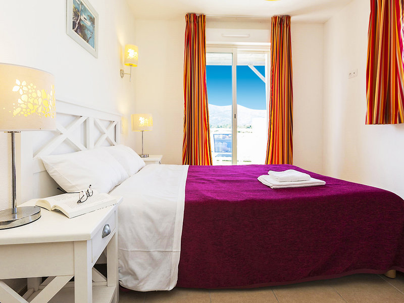 App. Typ C (A6C, ca. 42 qm), Klimaanlage, Wohn-/Schlafraum (Schlafsofa), 2 Schlafzimmer (franz. Doppel- oder Einzelbetten), Küchenzeile, TV (gegen Gebühr). Dusche, WC. Balkon/Terrasse. Max. 6E