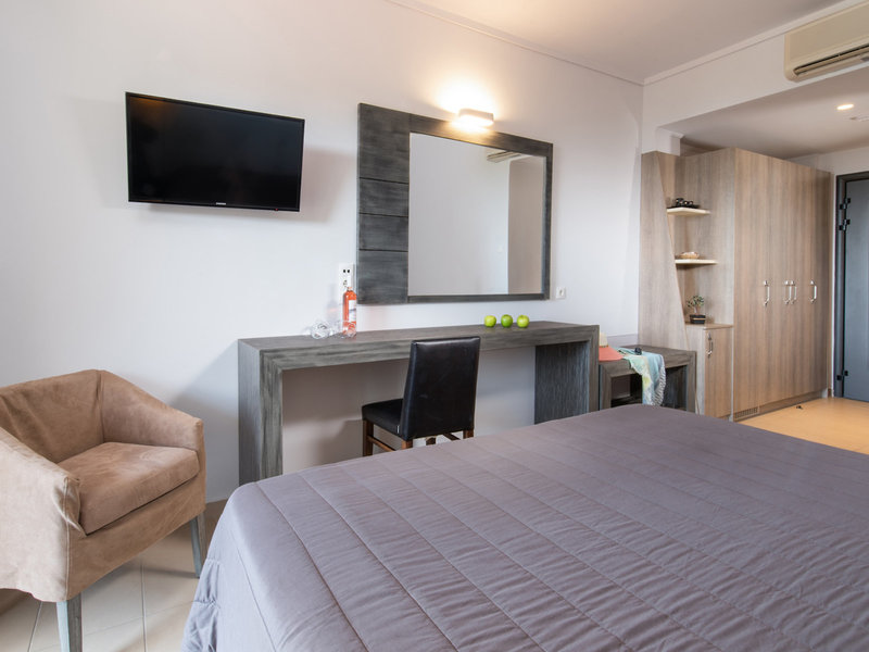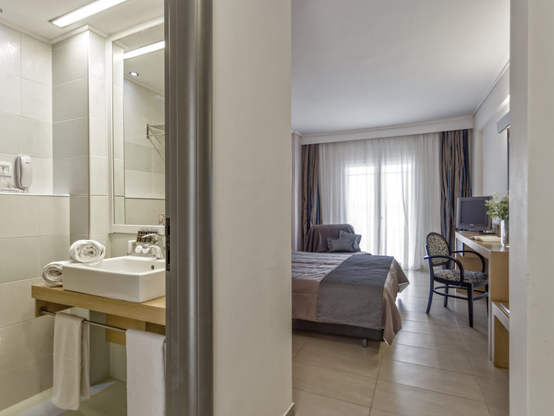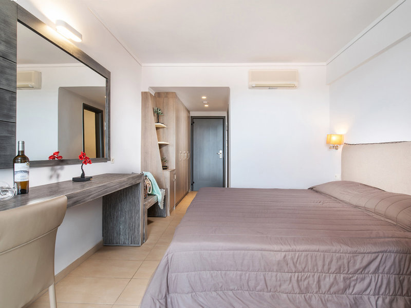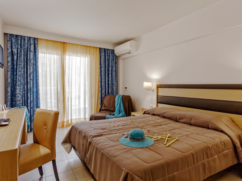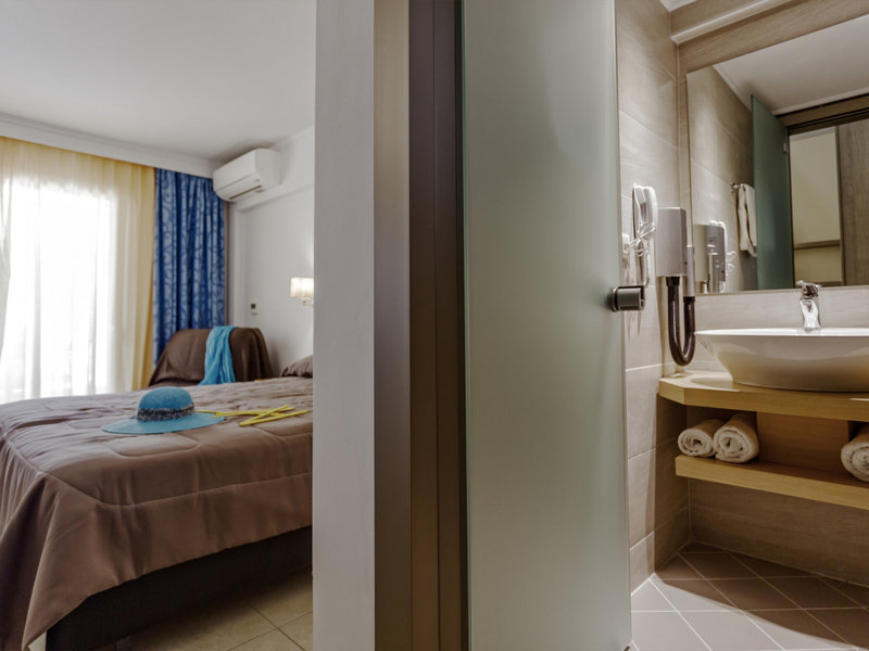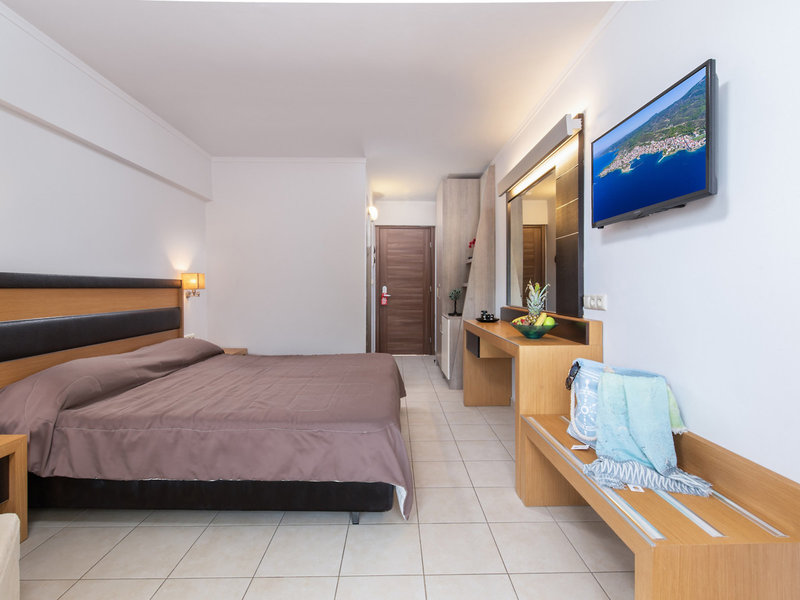- Dvojlôžková izba typu (DZX2), dvojlôžková izba, nefajčiarska izba, morská strana, obmedzený výhľad na more, výhľad do záhrady, cca 25 m², posledná kompletná rekonštrukcia 2018, kombinovaná obývacia izba/spálňa, 2 samostatné postele (85x200 cm), 1 king posteľ (170x200cm), detská postieľka: za poplatok, moskytiéra, klimatizácia: zdarma, apríl - október, individuálne nastaviteľná, studená, teplá, kúrenie: apríl, máj a október, individuálne nastaviteľná, podlaha: dlažba, trezor : zadarmo, pohovka, chladnička: zadarmo, príslušenstvo na prípravu kávy/čaju, rýchlovarná kanvica, telefón, internet: WLAN/WiFi: zadarmo, TV: plochá obrazovka, v spálni, nemecké programy, satelitná TV, rádio, upratovanie služba: denne, zdarma, sprcha, dažďová sprcha, WC, župan: zadarmo, papuče: bez poplatku, fén, make-up zrkadlo, balkón s posedením, balkón alebo terasa s posedením, terasa s posedením