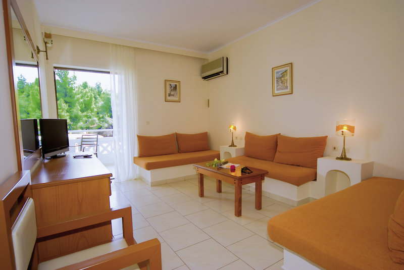 - 31-35 qm, Familien, Superior, Gartenblick, kombinierter Wohn-/Schlafraum, Sofabett, Dusche oder Badewanne, Haartrockner, Fliesen, Klimaanlage, 1 TV (Sat-TV), Kühlschrank, Balkon oder Terrasse