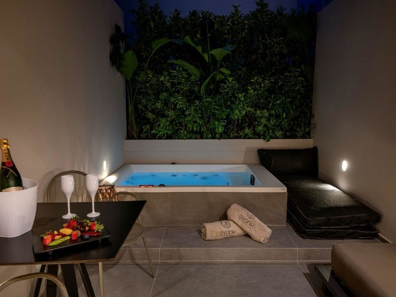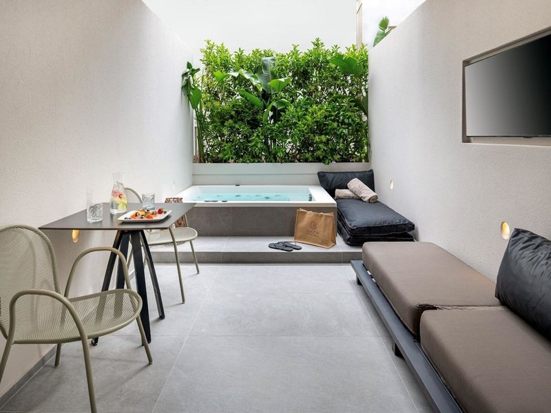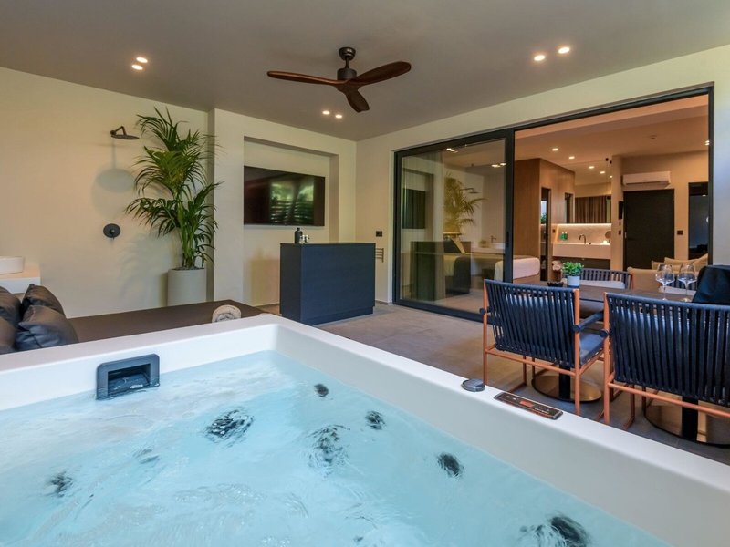 - Junior Suite with outdoor Jacuzzi (JSX1), Juniorsuite, Nichtraucherzimmer, im Hauptgebäude, Landblick, Stadtblick, ca. 25 - 25 m², letzte Komplettrenovierung 2024, Gesamtanzahl der Räume in diesem Zimmertyp: 1, Aufteilung wie folgt: kombiniertes Wohn-/Schlafzimmer, 1 Doppelbett (180x190cm), 1 Schlafsofa (140x200cm), Moskitonetz, Klimaanlage: ohne Gebühr, individuell regelbar, kalt, warm, Heizung: individuell regelbar, Fußboden: PVC, Safe: ohne Gebühr, Sofa, Schreibtisch, Kühlschrank: ohne Gebühr, Espressomaschine, Kaffee-/Teezubereiter, Wasserkocher, Telefon, Internet: WLAN/WiFi: ohne Gebühr, Fernseher: Flatscreen, im Schlafzimmer, Reinigungsservice: täglich, ohne Gebühr, Dusche, WC, Bademantel: ohne Gebühr, Slipper: ohne Gebühr, Föhn, Kosmetikspiegel, Balkon oder Terrasse: mit Whirlpool, mit Liegen, mit Sitzgelegenheit