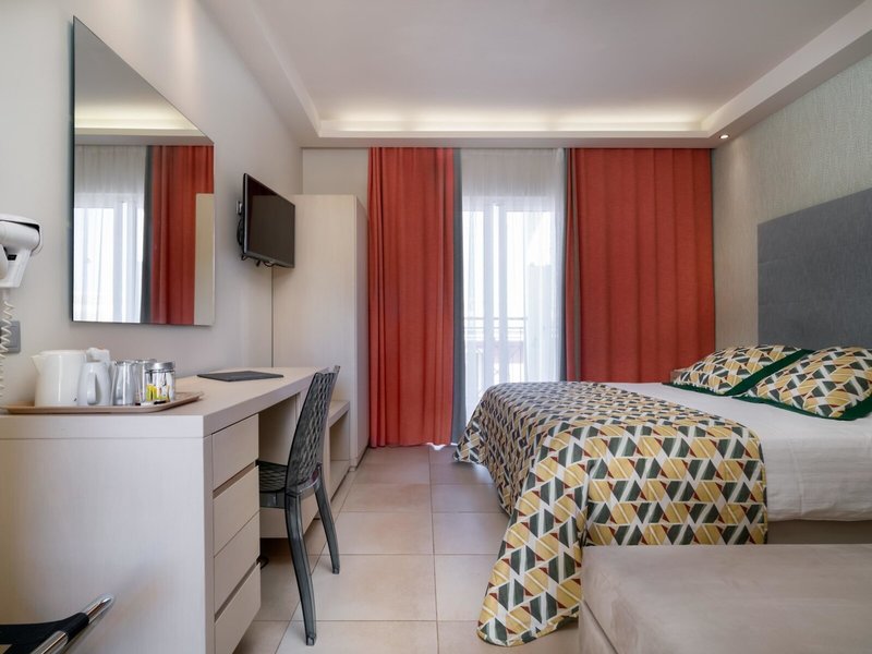 - Double Sea View (DZM1), Doppelzimmer, Meerblick, ca. 28 m², Gesamtanzahl der Räume in diesem Zimmertyp: 1, Aufteilung wie folgt: 1 Schlafzimmer, 2 Einzelbetten, 1 Schlafsofa, Klimaanlage: ohne Gebühr, bei All Inclusive inklusive, individuell regelbar, kalt, warm, Fußboden: Fliesenboden, Safe: ohne Gebühr, bei All Inclusive inklusive, Kühlschrank, Kaffee-/Teezubereiter, Wasserkocher, Telefon, Internet: WLAN/WiFi: ohne Gebühr, bei All Inclusive inklusive, Fernseher: Flatscreen, Sat-TV, Badewanne oder Dusche, Föhn, Balkon oder Terrasse: mit Sitzgelegenheit