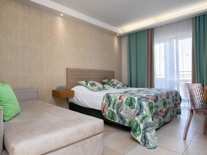 - Dvojlôžková izba Superior s výhľadom do záhrady (DZG3), Dvojlôžková izba, Nefajčiarska izba, Výhľad do záhrady, cca. 28 m², Celkový počet izieb v tomto type izby: 1, Rozloženie: 1 spálňa, 2 jednolôžka, 1 rozkladacia pohovka, Klimatizácia: zadarmo, v cene All Inclusive, individuálne ovládaná, studená, teplá, Poschodie: dláždená podlaha, Trezor: zadarmo, v cene All Inclusive, Chladnička, Kávovar/čajník: za poplatok, Rýchlovarná kanvica s pripojením na internet, Televízor s bezplatným pripojením na internet satelitná TV, Sprcha, Fén, Balkón alebo terasa: s posedením