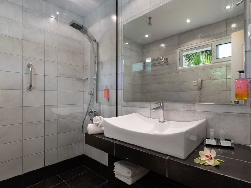- Double Deluxe Garden View (DZG2), Doppelzimmer, Nichtraucherzimmer, Gartenblick, ca. 28 m², Gesamtanzahl der Räume in diesem Zimmertyp: 1, Aufteilung wie folgt: 1 Schlafzimmer, 2 Einzelbetten, 1 Schlafsofa, Klimaanlage: ohne Gebühr, bei All Inclusive inklusive, individuell regelbar, kalt, warm, Fußboden: Fliesenboden, Safe: ohne Gebühr, bei All Inclusive inklusive, Kühlschrank, Kaffee-/Teezubereiter, Wasserkocher, Telefon, Internet: WLAN/WiFi: ohne Gebühr, bei All Inclusive inklusive, Fernseher: Flatscreen, Sat-TV, Dusche, Bademantel: ohne Gebühr, bei All Inclusive inklusive, Slipper: ohne Gebühr, bei All Inclusive inklusive, Föhn, Balkon oder Terrasse: mit Sitzgelegenheit