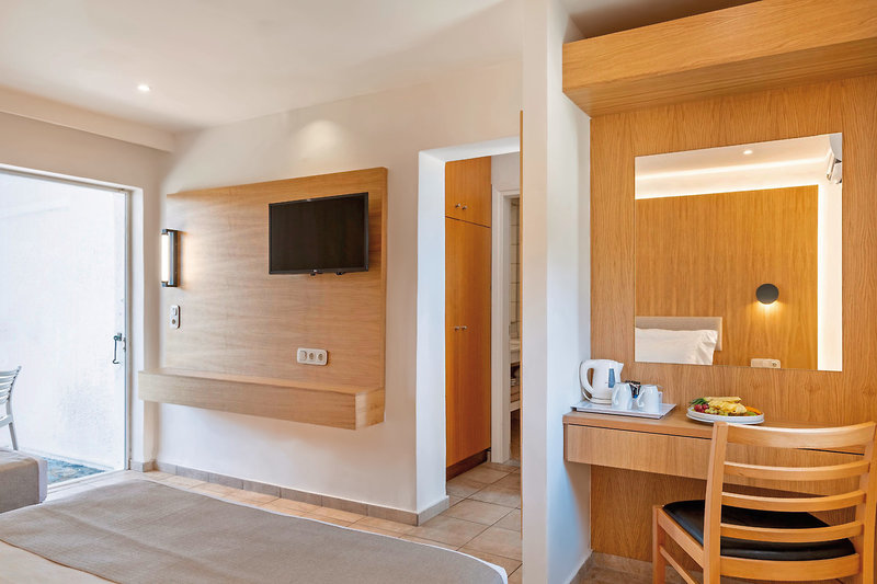 - 21-25 qm, Doppel, Komfort, Gartenblick, renoviert, 1 Bad, Dusche oder Badewanne, WC, Badeslipper, Haartrockner, Fliesen, Klimaanlage, individuell regulierbar, Safe (kostenpflichtig), 1 TV (Sat-TV, deutschsprachiges Programm, landestypisches Programm, sonstiges Programm, Flachbildschirm), Kaffee/Tee, Kühlschrank, Terrasse (möbliert), hochwertige Badartikel