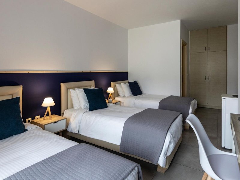 Ubytovanie: Izby sú vybavené klimatizáciou a kúrením. Hostia si môžu vychutnať výhľad na more z balkóna alebo terasy. Izby sú vybavené manželskou posteľou alebo posteľou veľkosti queen. K dispozícii sú samostatné spálne. Prístelky je možné vyžiadať. Štandardom je aj chladnička. Telefón, TV a bezplatné Wi-Fi pripojenie na internet zabezpečujú optimálne pohodlie. Kúpeľňa so sprchovacím kútom a vaňou je vybavená sušičom vlasov. Pre väčšie pohodlie sú k dispozícii toaletné potreby. K dispozícii sú aj bezbariérové izby s bezbariérovou kúpeľňou. Hotel ponúka rodinné a nefajčiarske izby.