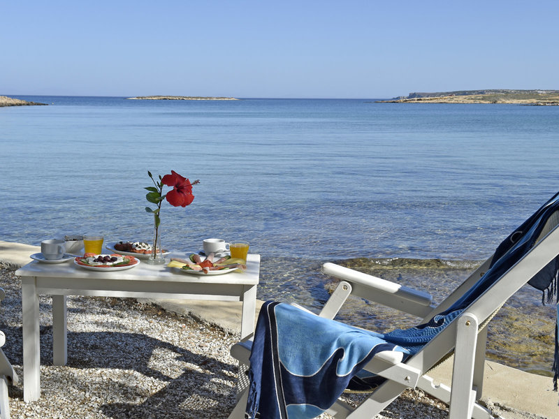 Lage & Umgebung Direkt am flach abfallenden Kiesstrand. Nach Naoussa mit zahlreichen Einkaufsmöglichkeiten, Bars und Tavernen etwa 600 m. Die Studios und Appartements liegen im Nebengebäude und sind ca. 450 m vom Strand entfernt.