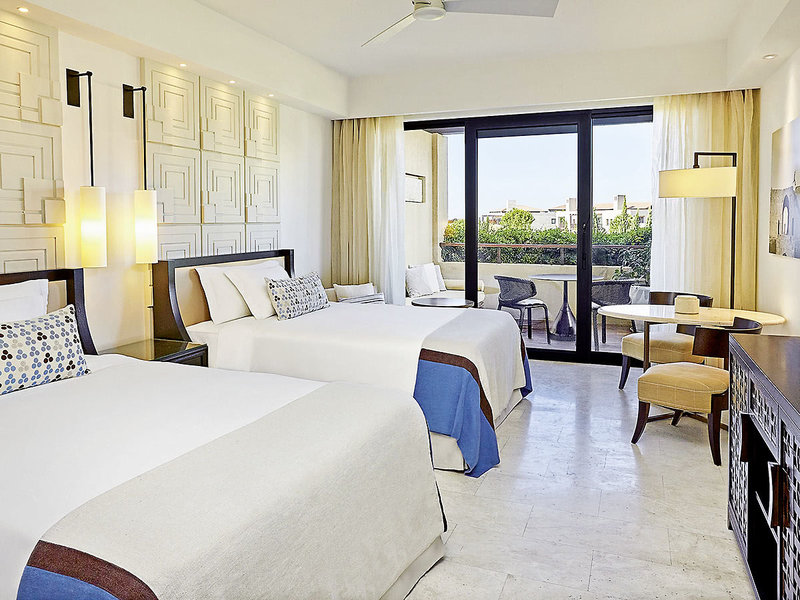 Deluxe Resort partial Sea View (DSM, ca. 43 qm),elegant eingerichtet, Klima, Minibar (geg. Geb.), TV, Telefon, WLAN, Safe. Bad, Dusche, WC, Föhn. Balkon/Terrasse mit eingeschränktem Meerblick. Max. 3E