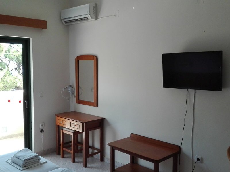 So wohnen Sie: Für angenehmes Raumklima in den Zimmern sorgen eine Klimaanlage (gegen Gebühr) und eine Heizung. Die Gäste können den Meerblick von Balkon oder Terrasse genießen. Die Zimmer verfügen über ein Doppelbett und ein Sofabett. Zustellbetten können angefordert werden. Außerdem sind ein Safe und eine Minibar verfügbar. Eine Kochnische mit einem Kühlschrank und einem Minikühlschrank ist ebenfalls standardmäßig vorhanden. Besten Urlaubskomfort bieten ein Telefon, ein TV-Gerät und WiFi. Im Badezimmer, ausgestattet mit einer Dusche und einer Badewanne, gibt es einen Haartrockner. Für Eltern mit Kindern stehen Familienzimmer zur Verfügung.
