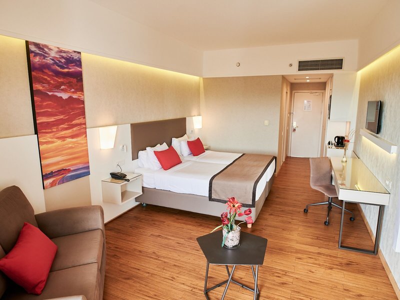 Vaše ubytovanie: Izby sú vybavené klimatizáciou a kúrením. Väčšina ubytovacích jednotiek ponúka výhľad na more z balkóna alebo terasy. Izby sú vybavené manželskou posteľou veľkosti king a rozkladacou pohovkou. Prístelky sú k dispozícii na požiadanie. K dispozícii je aj trezor, minibar a písací stôl. K dispozícii je chladnička a príslušenstvo na prípravu čaju/kávy. Pre pohodlie hostí je k dispozícii žehliaca súprava. Okrem toho je k dispozícii telefón s priamou voľbou, TV so satelitnými/káblovými programami a bezplatné Wi-Fi pripojenie na internet. K dispozícii sú papuče. Kúpeľne sú vybavené sprchovacím kútom, vaňou a vírivkou. K dispozícii je aj sušič vlasov. Pre väčšie pohodlie sú k dispozícii toaletné potreby a výber uterákov. K dispozícii sú aj bezbariérové izby s bezbariérovou kúpeľňou. Hotel ponúka rodinné izby a nefajčiarske izby.