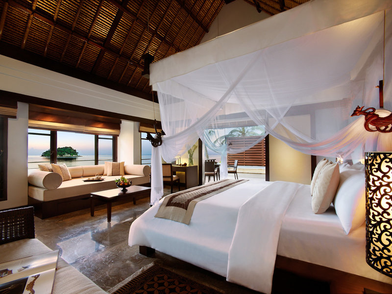 - Rainforest Oceanfront Villa (VIF1), Villa, Nichtraucherzimmer, Nordseite, Westseite, Meerblick, ca. 84 m², Gesamtanzahl der Räume in diesem Zimmertyp: 1, Aufteilung wie folgt: kombiniertes Wohn-/Schlafzimmer, 1 King Size Bett, Babybett: ohne Gebühr, Anfrage notwendig, Moskitonetz, Klimaanlage: ohne Gebühr, individuell regelbar, kalt, Fußboden: Fliesenboden, Safe: ohne Gebühr, Sofa, Schreibtisch, Nespressomaschine, Kaffee-/Teezubereiter, Wasserkocher, Minibar: gegen Gebühr, Telefon, Internet: WLAN/WiFi: ohne Gebühr, Fernseher: Flatscreen, Kabel-TV, DVD-Player, CD-Player, Roomservice: täglich 24 Stunden, gegen Gebühr, Reinigungsservice: täglich, ohne Gebühr, Dusche, WC, Bademantel: gegen Gebühr, Slipper: gegen Gebühr, Föhn, Terrasse: mit Liegen, mit Plunge Pool
