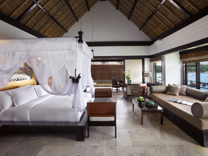 - Oceanview Infinity Pool Villa - One Bedroom (VIX3), Villa, Bergseite, Meerblick, ca. 400 m², Gesamtanzahl der Räume in diesem Zimmertyp: 2, Aufteilung wie folgt: Wohnzimmer, 1 Schlafzimmer, 1 King Size Bett, Babybett: ohne Gebühr, Anfrage notwendig, Moskitonetz, Klimaanlage: ohne Gebühr, individuell regelbar, kalt, Fußboden: Fliesenboden, Safe: ohne Gebühr, Schreibtisch, Bügeleisen, Bügelbrett, Nespressomaschine, Kaffee-/Teezubereiter, Wasserkocher, Minibar: gegen Gebühr, Telefon, Internet: WLAN/WiFi: ohne Gebühr, Fernseher: Kabel-TV, DVD-Player, CD-Player, Roomservice: täglich 24 Stunden, gegen Gebühr, Reinigungsservice: täglich, ohne Gebühr, Dusche, separate Dusche, WC, separates WC, Bademantel: gegen Gebühr, Slipper: gegen Gebühr, Föhn, Terrasse: mit Liegen, mit Private Pool