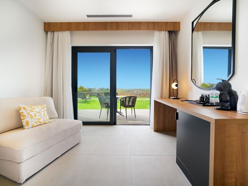 - Double Golf View (DZX1), Doppelzimmer, Mindestalter im Zimmer: 16 Jahre, Gartenseite, Gartenblick, Golfplatzblick, Blick auf Golf court, ca. 16 m², letzte Komplettrenovierung 2015, letzte Teilrenovierung 2015, Gesamtanzahl der Räume in diesem Zimmertyp: 1, Aufteilung wie folgt: kombiniertes Wohn-/Schlafzimmer, 2 Einzelbetten (100x200cm), Klimaanlage, Fußboden: Fliesenboden, Safe: Barzahlung, pro Tag ca. 2 EUR, Schreibtisch, Kaffee-/Teezubereiter, Telefon, Internet: WLAN/WiFi: ohne Gebühr, Fernseher: Flatscreen, Badewanne, WC, Föhn, Terrasse: mit Sitzgelegenheit