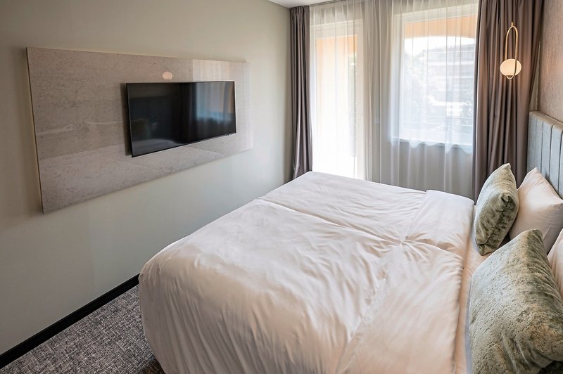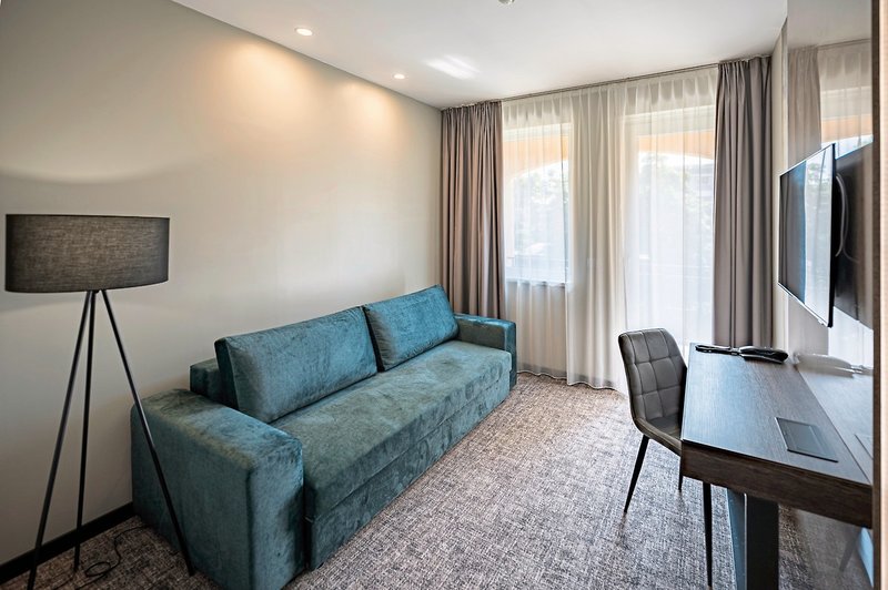 - Približne 28 m², dvojlôžková izba, výhľad do záhrady, 1 kúpeľňa, vaňa, WC, župan, sušič vlasov, klimatizácia, minibar (za poplatok), trezor, TV (satelitná TV, plochá obrazovka), balkón