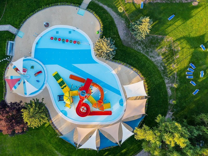 - Bazény: detský bazén, vnútorný bazén, vonkajší bazén, slnečníky pri bazéne, ležadlá pri bazéne, tobogán