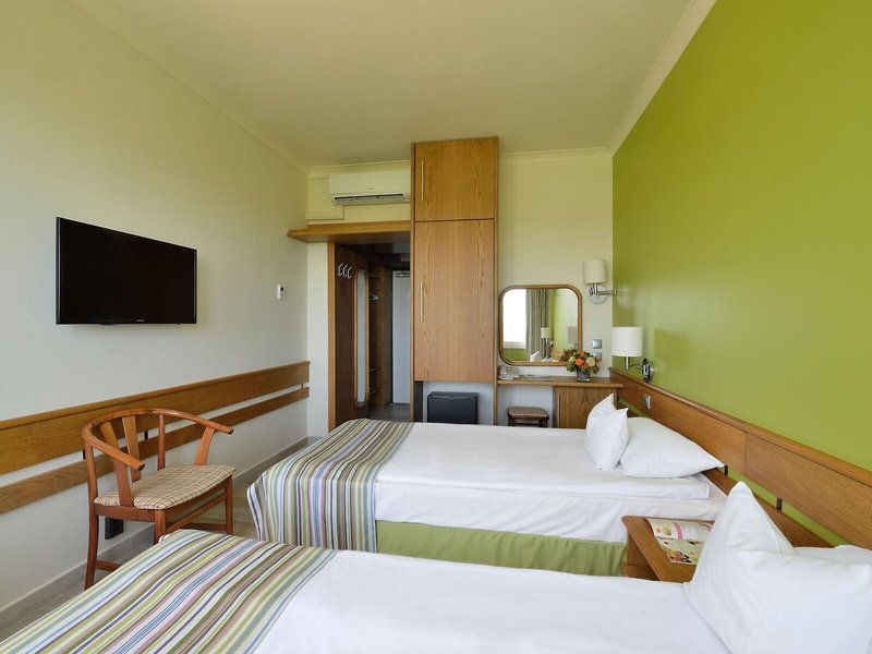 Vaše ubytovanie: Klimatizácia zabezpečuje príjemnú vnútornú klímu v izbách. Z balkóna alebo terasy sa hostia môžu kochať výhľadom do záhrady. Izby majú manželskú posteľ a rozkladaciu pohovku. Prístelky je možné vyžiadať. K dispozícii je aj minibar a písací stôl. Súčasťou štandardného vybavenia je aj chladnička. Telefón, satelitná televízia, rádio a WiFi (bezplatné) poskytujú maximálny komfort počas dovolenky. Kúpeľňa je vybavená sprchovacím kútom, sušičom vlasov a kozmetickým zrkadlom. K dispozícii sú aj bezbariérové izby s bezbariérovými kúpeľňami. Hotel ponúka rodinné a nefajčiarske izby.