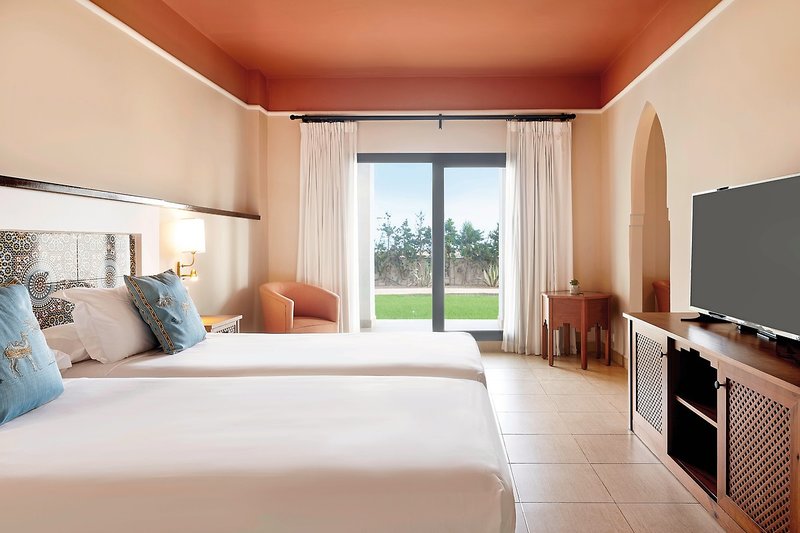 - 36-40 m², dvojlôžková izba, výhľad na bazén, kombinovaná obývacia izba/spálňa, dve samostatné postele, sprchovací kút, vaňa, WC, fén, klimatizácia, minibar (dopĺňa sa pri príchode), voda, trezor, TV, Wi-Fi, balkón alebo terasa (zariadená)