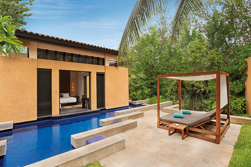 Rozsiahly vilový komplex obklopený lagúnami a mangrovovými lesmi zaujme prvkami ázijsko-mexického štýlu, vynikajúcimi kúpeľmi a exkluzívnymi špecializovanými reštauráciami v prvotriednej elegantnej atmosfére.Hotel: Luxusný rezort ázijskej hotelovej siete je dokonalou zmesou prírody a pohodlia a nastavuje nové štandardy pre životný štýl na Mayskej riviére. Časť komplexu sa nachádza na lagúne vo vnútrozemí, druhá časť na bielej piesočnatej pláži. Luxusné prostredie, prvky ázijského a mexického štýlu, výhradne vily pri bazéne, vynikajúce služby a vybavenie ako 7 reštaurácií, 3 bary, bazén, galéria s ázijskými a mexickými remeslami, umenie a suveníry, kúpele a aktivity pre deti (do 12 rokov vrátane ) presvedčiť náročných hostí. Plážový klub Sands s veľkým bazénom s nekonečným okrajom priamo na mori, vnútornou a vonkajšou reštauráciou a barom Raw vytvárajú výnimočné útočisko. Plážový klub Sur len pre dospelých je o niečo tichší a má 2 bazény. Letisko Cancún je vzdialené približne 40 minút.