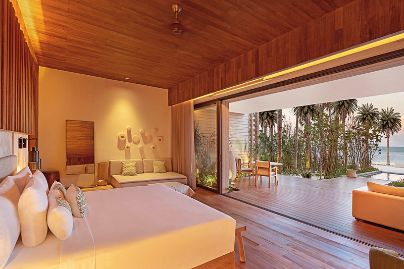 Beachfront Lanai Pool Suite (11) ca. 295 qm: Neu gebaut, im Erdgeschoss, direkt am Strand. Terrasse mit beheiztem Plunge Pool, Lounge Möbeln, Hängematte und Meerblick. Auch als Oceanfront Veranda Pool Suite ca. 162 qm in der oberen Etage buchbar.