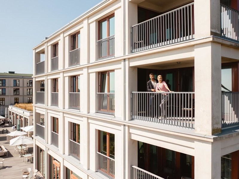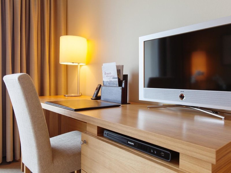 - Doppelzimmer Deluxe seitlicher Meerblick (DZX1), Doppelzimmer, Nichtraucherzimmer, im Hauptgebäude, Landseite, seitlicher Meerblick, Landblick, ca. 31 m², kombiniertes Wohn-/Schlafzimmer, 1 Doppelbett (200x200cm), Klimaanlage: ohne Gebühr, saisonabhängig; wetterabhängig, individuell regelbar, Heizung: saisonabhängig; wetterabhängig, individuell regelbar, Fußbodenheizung, Fußboden: Teppichboden, Safe: ohne Gebühr, Sitzecke, Schreibtisch, Wasserkocher, Minibar: gegen Gebühr, Softdrinks: ohne Gebühr, alkoholische Getränke: gegen Gebühr, Snacks: gegen Gebühr, Minibarauffüllung: täglich, Telefon, Internet: WLAN/WiFi: ohne Gebühr, Fernseher: Flatscreen, Roomservice: gegen Gebühr, Reinigungsservice: ohne Gebühr, Badewanne oder Dusche, WC, Bademantel: ohne Gebühr, Slipper, Föhn, Kosmetikspiegel, Französischer Balkon